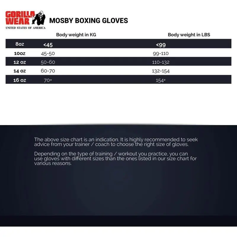 Compra en Decathlon Guantes de boxeo – Mosby De la legendaria marca mundial de culturismo y fitness Gorilla Wear. «For the Motivated»!