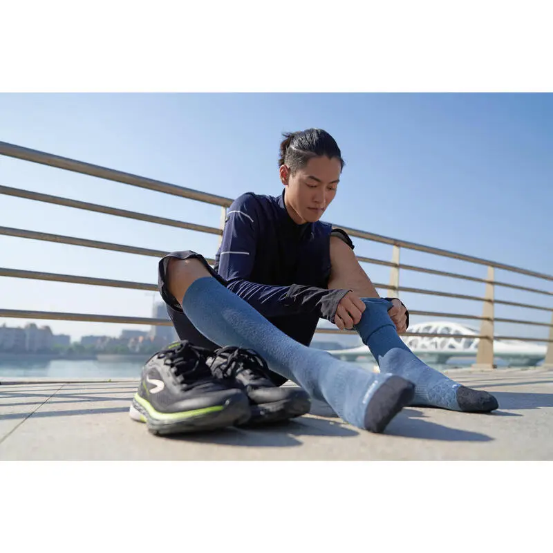 Compra en Decathlon Calcetines running largos lana merina Estos calcetines de running han sido diseñados para proteger tus pies del frÃo durante tus salidas de running con temperaturas bajo cero. Caña alta: pantorila.