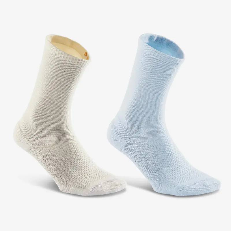 Compra en Decathlon Calcetines caminar altos x2 Urban Walk beis Calcetines altos de colores con un tejido de punto que se ajusta al pie para limitar las zonas de roce y maximizar así el confort y la sujeción diaria.