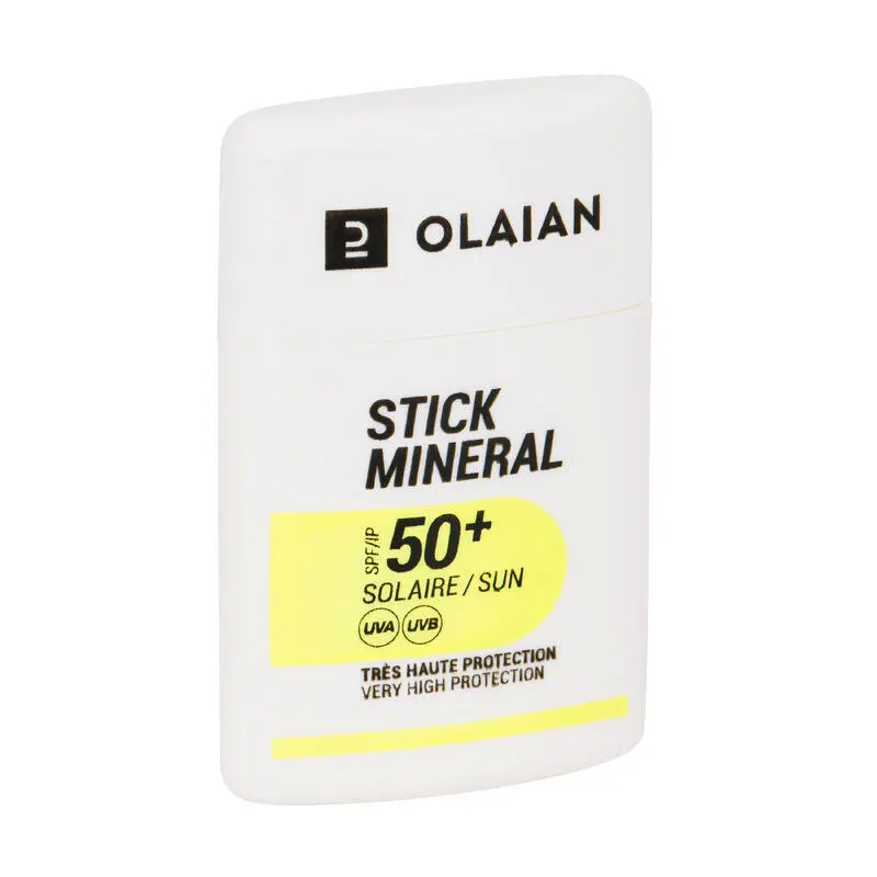 Compra en Decathlon Stick Solar Cara Mineral Natural SPF50+ Olaian Para el surfista que quiere una protección solar para el rostro muy resistente al agua de mar.
