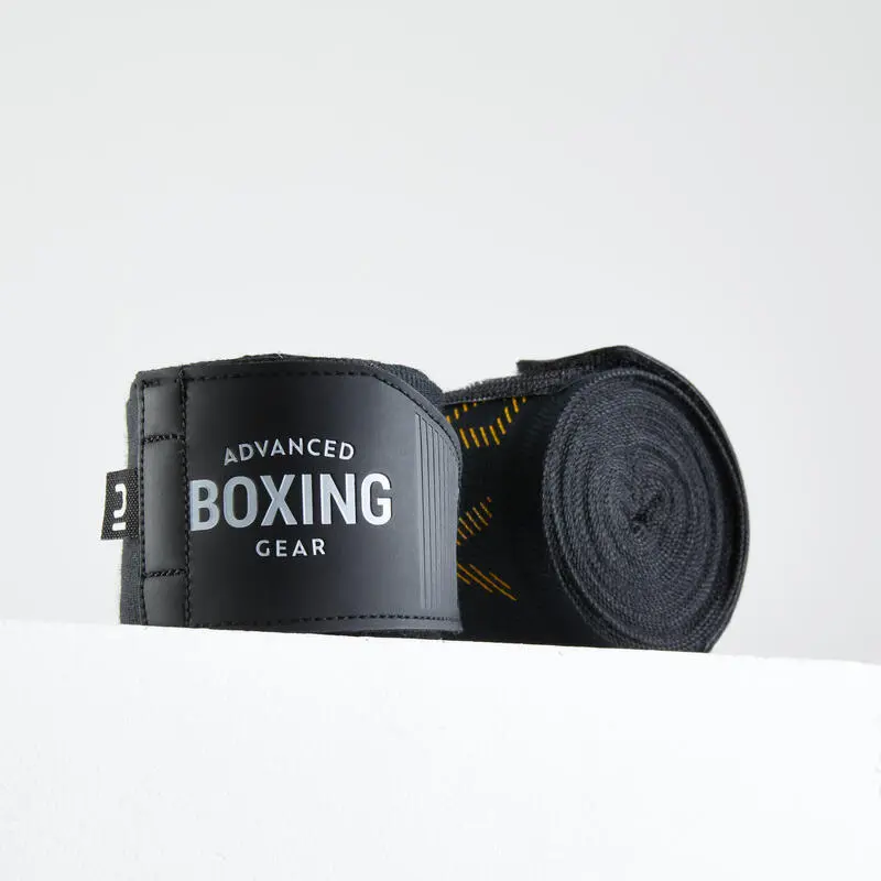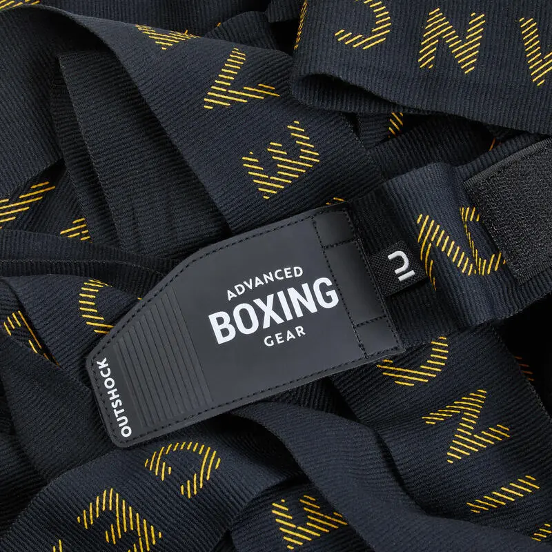 Compra en Decathlon Vendas de boxeo 4,5 M Outshock negro/oro Vendas de boxeo que te ayudan a proteger las articulaciones de la mano y la muñeca, además de absorber el sudor en las sesiones de boxeo y deportes de contacto.