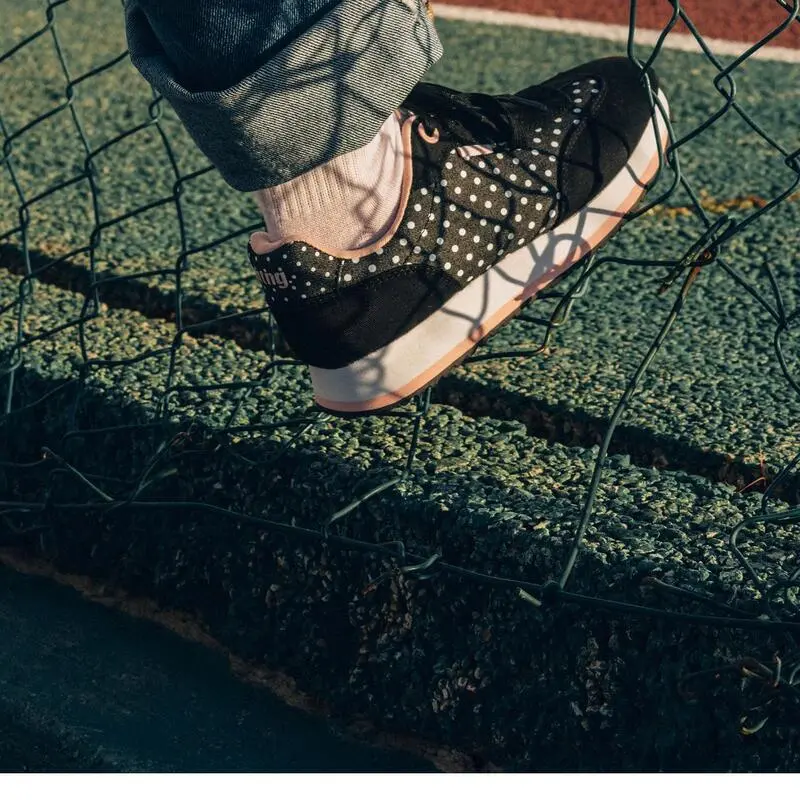 Compra en Decathlon Zapatillas de caminar para mujer mtng nora en color negro Sneakers deportivas mtng diseñadas en tejido vaquero en color negro con detalles en color rosa y lunares blancos. Tiene paneles de diferentes texturas y colores. Cierre de cordones planos y piso bico.